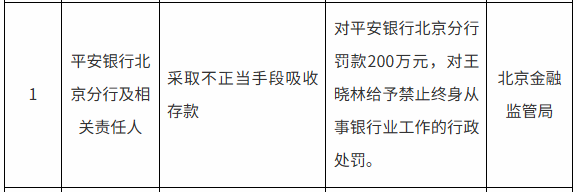 平安银行北京分行被罚200万元,相关责任人终身禁业