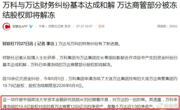 结果在2023年6月,在万达冲击IPO的关键时刻,万科背后捅刀将万达告上法庭,申请冻结了万达19.8亿资产,连带着万达价值1200多亿的股权受限制。这等于间接宣告万达2023年底冲击IPO的计划失败,差点要了王健林老命。