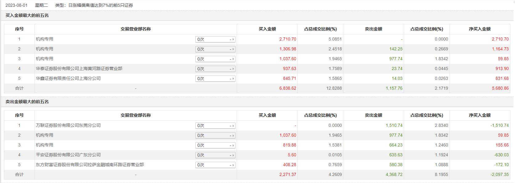 具体来看,机构买入5875.17万元,卖出1784.22万元,合计净买入4090.94万元。此外,华泰证券上海黄河路证券营业部、华鑫证券上海分公司分别买入937.63万元、845.71万元;万联证券东莞分公司、平安证券广东分公司分别卖出1510.74万元、635.63万元。