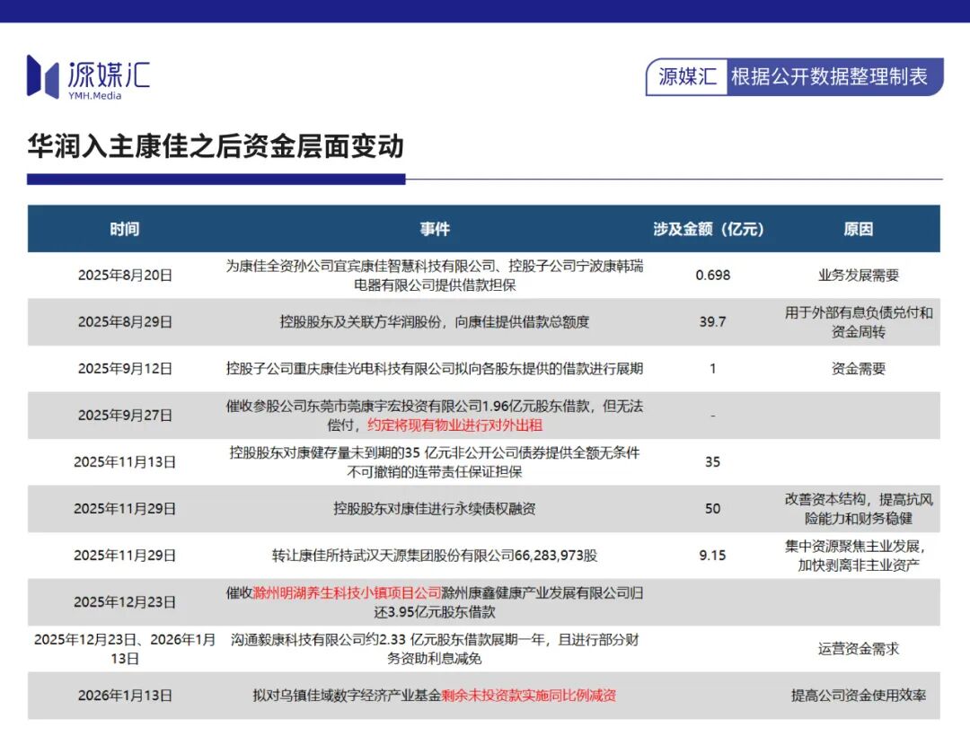 透过2025年8月以来康佳的公告可以看到,华润率先开始增厚康佳的流动性资金,包括提供融资担保、子公司和参股公司债务展期、提供股东借款额度、出售投资公司股权和减少认缴基金出资等方式。