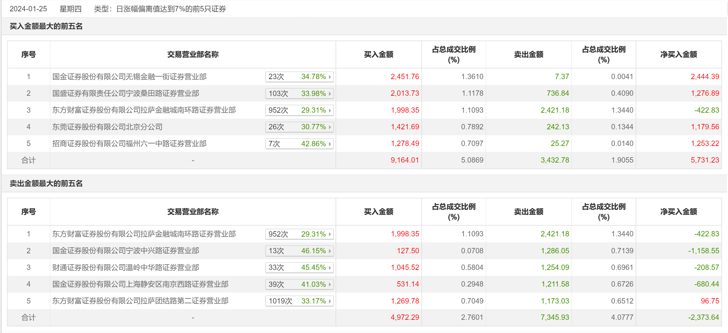 具体来看,知名游资现身龙虎榜,国金证券无锡金融一街证券营业部、宁波桑田路(国盛证券宁波桑田路证券营业部)分别买入2451.76万元、2013.73万元;东方财富证券拉萨金融城南环路证券营业部、国金证券宁波中兴路证券营业部分别卖出2421.18万元、1286.05万元。