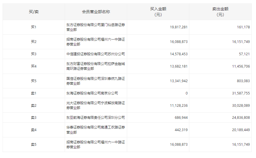 2月8日,深中华A今日跌停,全天换手率达36.97%,振幅达8.26%。龙虎榜数据显示,营业部席位合计净卖出4550.57万元。其中,东海证券南京分公司、光大证券宁波解放南路证券营业部分别卖出3158.78万元、3002.81万元;东方证券厦门仙岳路证券营业部、招商证券福州六一中路证券营业部分别买入1981.73万元、1608.89万元。