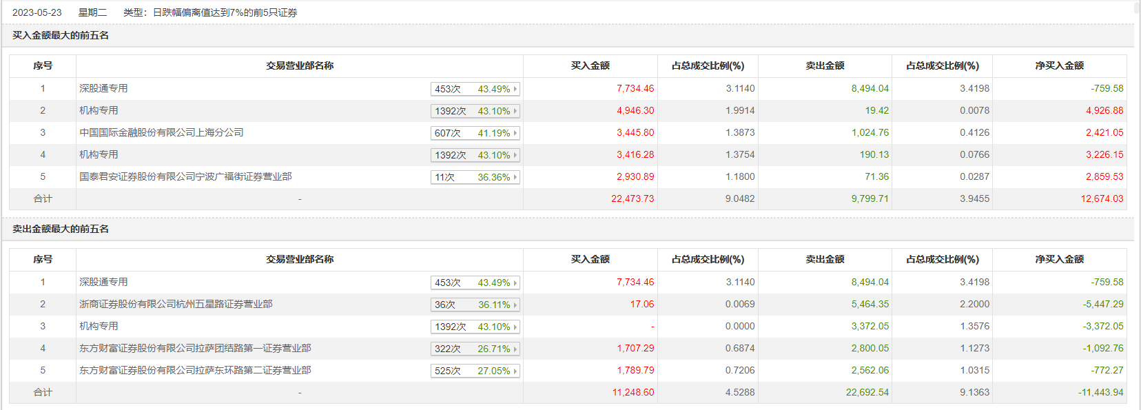 5月23日下午,深科技今日跌8.64%,龙虎榜数据显示,上榜营业部席位全天成交5.0亿元,占当日总成交金额比例为20.13%。其中,买入金额为2.6亿元,卖出金额为2.4亿元,合计净买入1989.66万元。