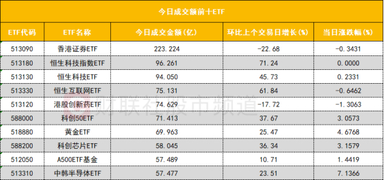 从成交额前十的ETF来看,香港证券ETF(513090)成交额位居首位,恒生科技指数ETF(513180)成交额位居次席。