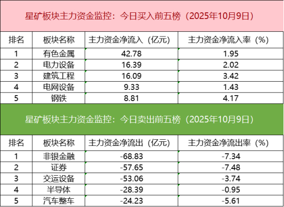 板块资金流出方面,非银金融板块主力资金净流出居首。