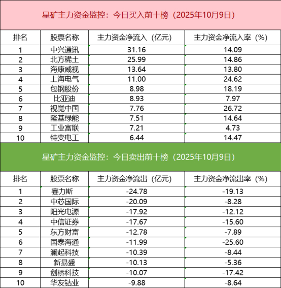 从个股主力资金监控数据来看,主力资金净流入前十的个股所属板块较为分散,中兴通讯净流入居首。