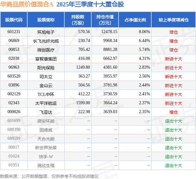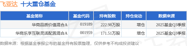 根据2025基金Q3季报公募基金重仓股数据,重仓该股的公募基金共2家,其中持有数量最多的公募基金为华商基金的华商品质价值混合A。华商品质价值混合A目前规模为8.63亿元,最新净值1.8158(12月30日),较上一交易日上涨0.27%,近一年上涨47.36%。该公募基金现任基金经理为余懿。余懿在任的基金产品包括:华商乐享互联灵活配置混合A,管理时间为2022年9月13日至今,期间收益率为42.17%;华商远见价值A,管理时间为2023年1月10日至今,期间收益率为45.69%;华商恒鑫回报混合A,管理时间为2025年3月4日至今,期间收益率为23.44%。