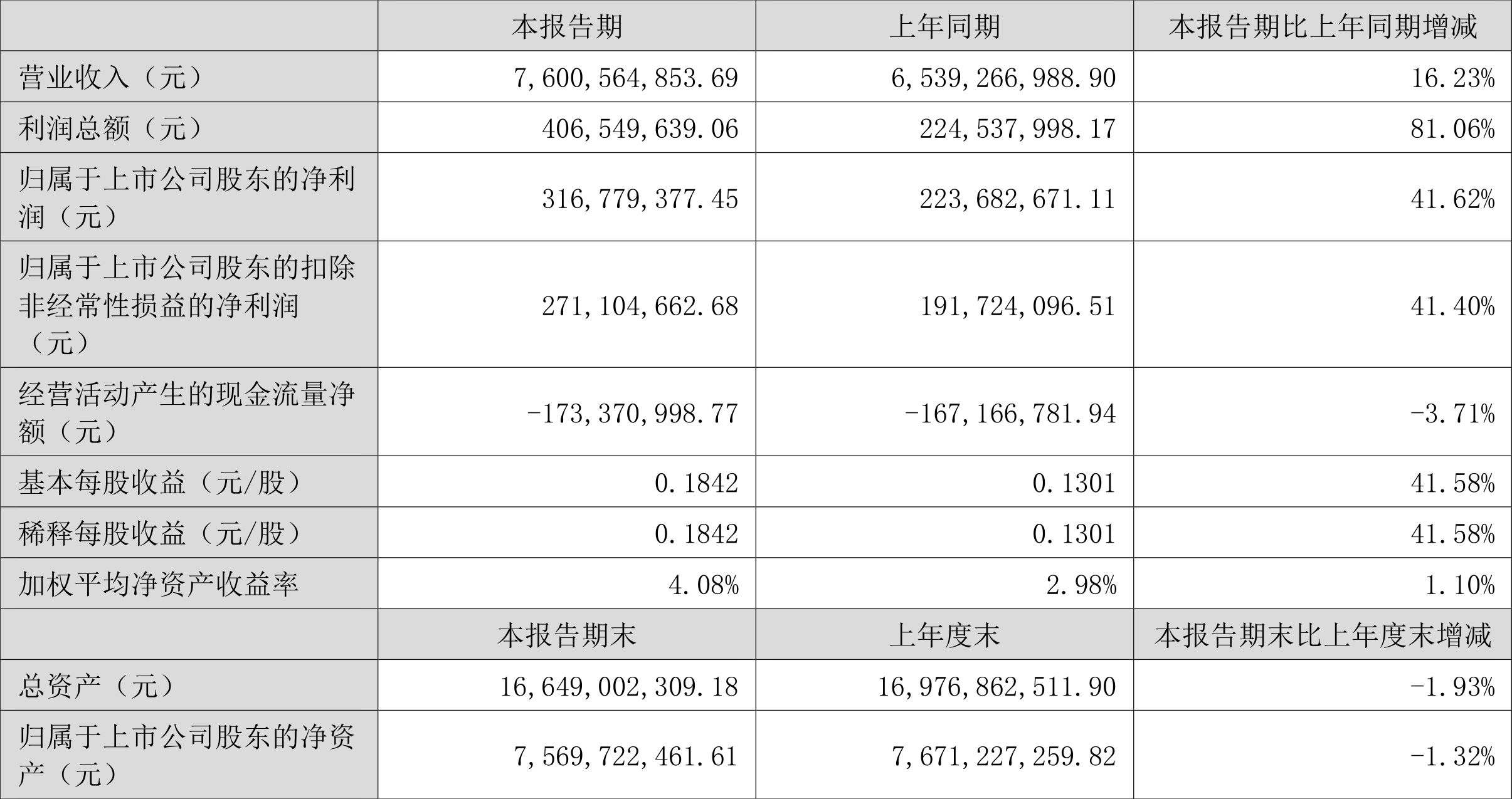数据显示,2024年上半年公司加权平均净资产收益率为4.08%,较上年同期增长1.10个百分点;公司2024年上半年投入资本回报率为4.06%,较上年同期增长1.75个百分点。