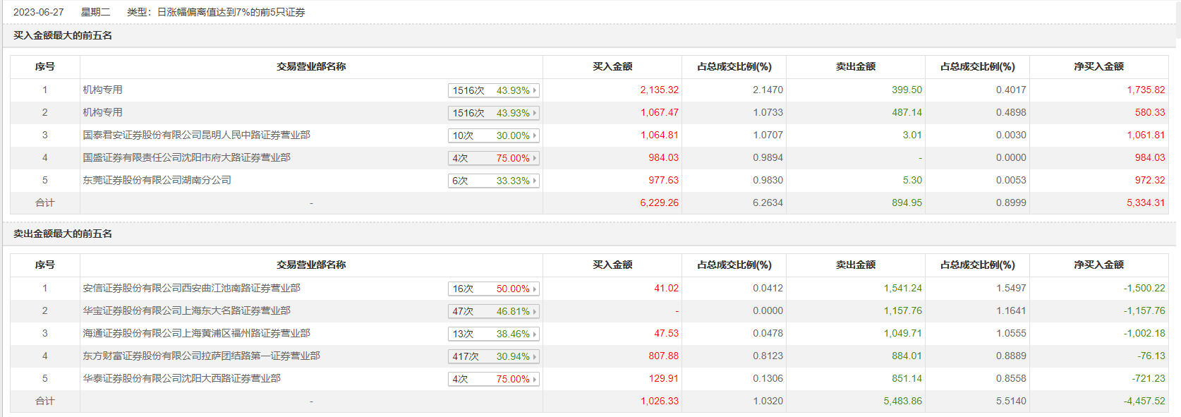 具体来看,机构买入3202.79万元,卖出886.64万元,合计净买入2316.15万元。此外,国泰君安证券昆明人民中路证券营业部、国盛证券沈阳市府大路证券营业部分别买入1064.81万元、984.03万元;安信证券西安曲江池南路证券营业部、华宝证券上海东大名路证券营业部分别卖出1541.24万元、1157.76万元。