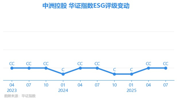 日前,华证指数公布了新一期(2025年7月31日)的ESG评级结果,中洲控股(000042.SZ)获得CC评级(华证指数评级为C起至AAA九档,C为最低档,AAA为其最高一级评级/AA为其第二档),上一期(2025年4月30日)ESG评级为CC。本期ESG评级在102家房地产管理和开发行业A股上市公司中排名第98(上一期排名第102)。