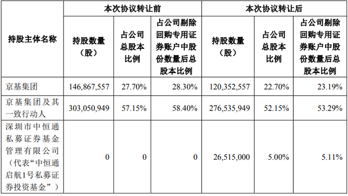 中恒通斥资4.26亿元接手京基智农5%股份 后者控制权未受影响