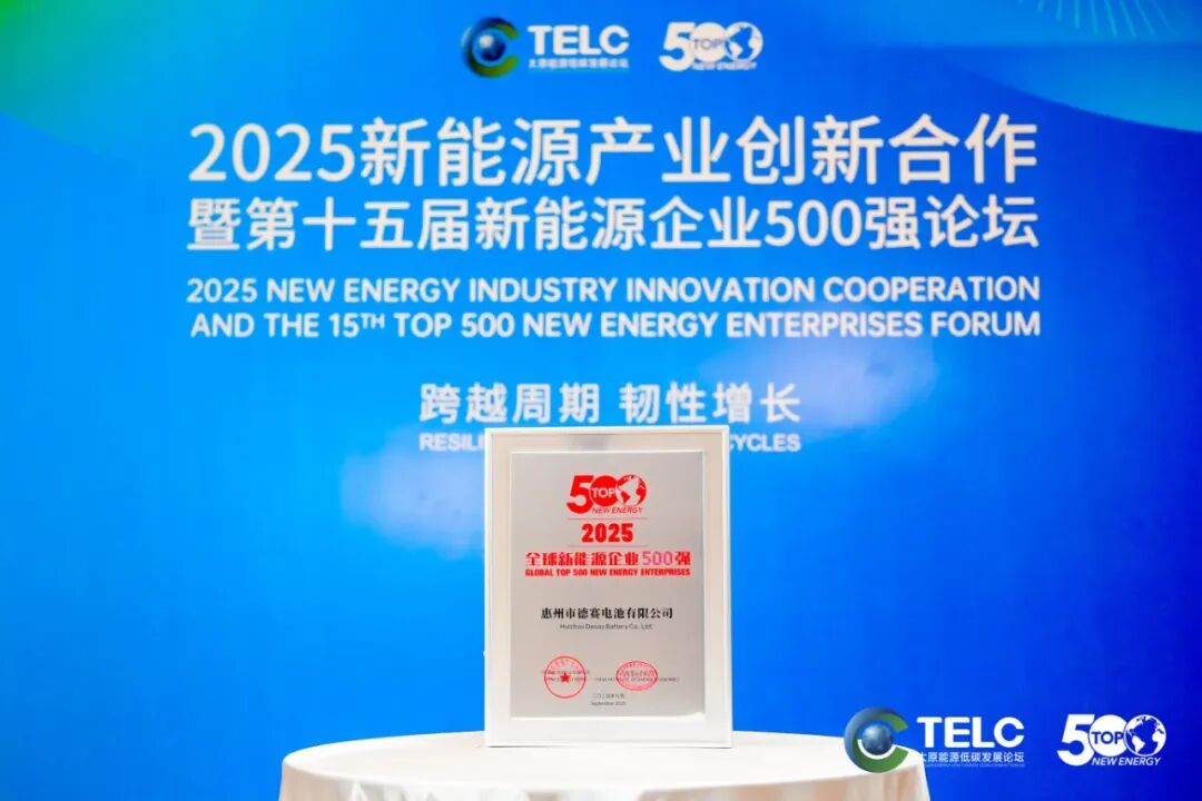 德赛电池荣登“2025全球新能源企业500强”榜单,实力彰显行业领先地位