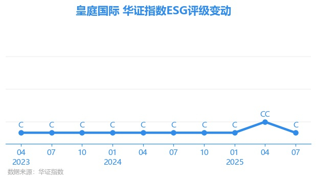 日前,华证指数公布了新一期(2025年7月31日)的ESG评级结果,皇庭国际(000056.SZ)获得C评级(华证指数评级为C起至AAA九档,C为最低档,AAA为其最高一级评级/AA为其第二档),上一期(2025年4月30日)ESG评级为CC。本期ESG评级在102家房地产管理和开发行业A股上市公司中排名第102(上一期排名第106)。