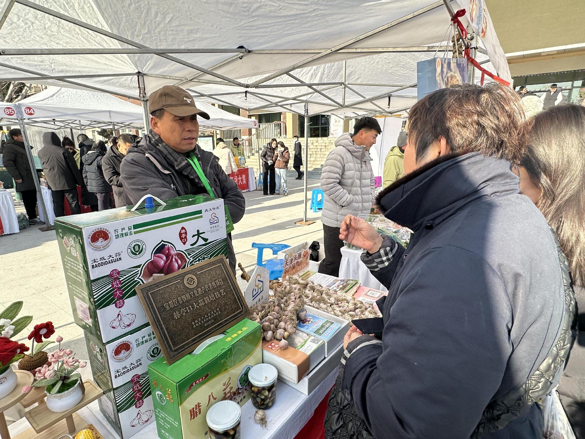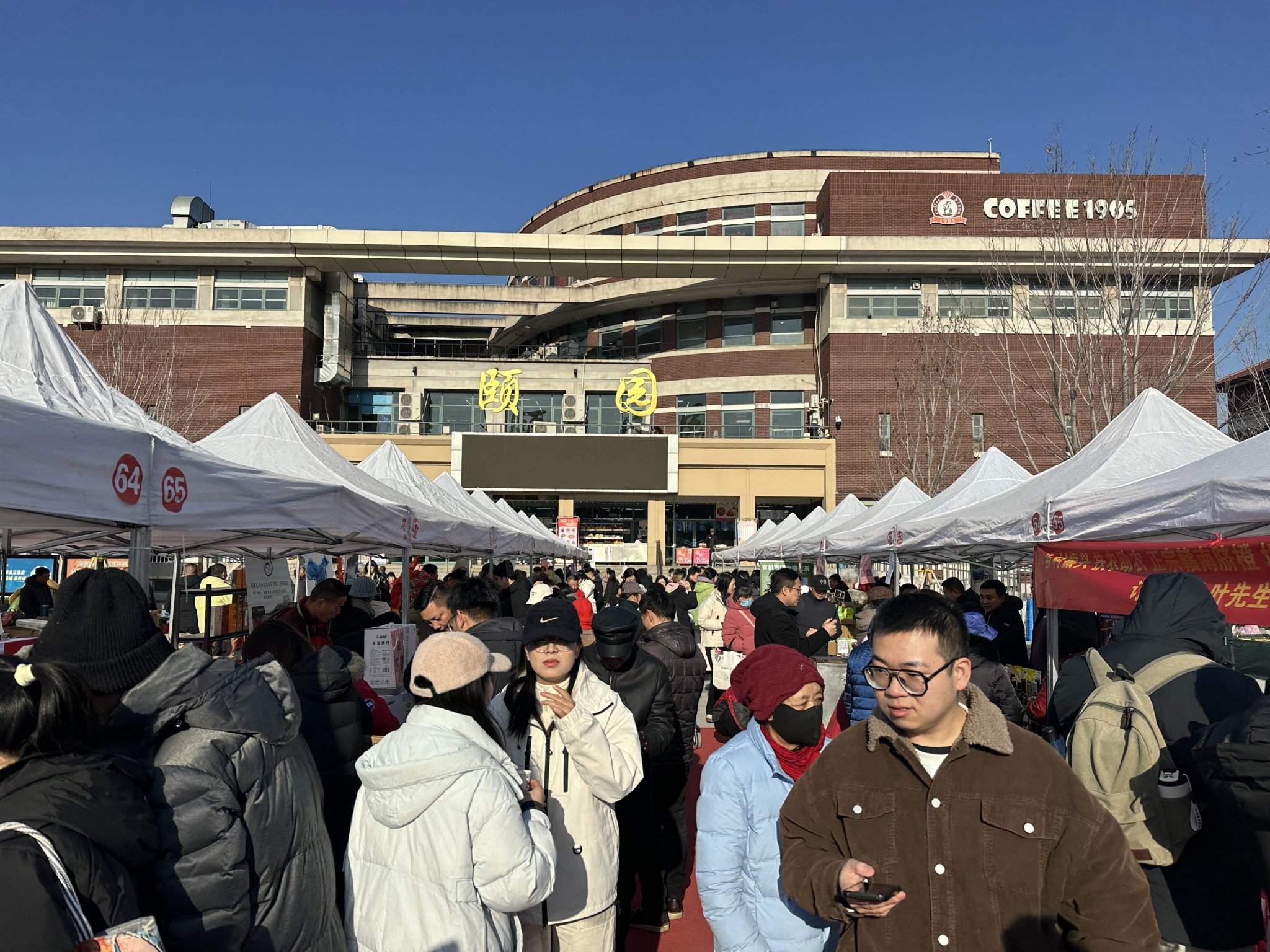 “大学校园里也能赶大集?走,逛逛去!”1月8日,2026年中国农业大学“头雁”年货大集在农大西校区热闹开市。来自20个省份的500余种特色农产品,从原产地的田间地头新鲜直达校区,吸引市民学生前来淘货。