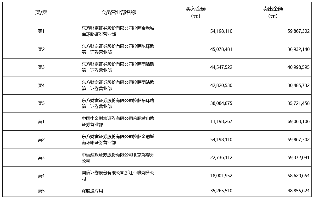 e公司讯,深圳华强今日跌停,成交额45.96亿元,换手率12.98%,盘后龙虎榜数据显示,买入前五席位均为东方财富拉萨证券营业部,深股通专用席位买入3526.55万元并卖出4885.56万元。