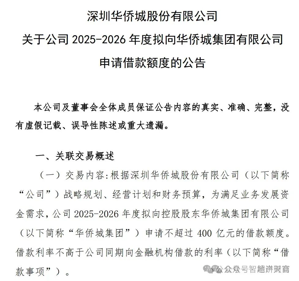 但是,华侨城股份连发两则公告,一是向华侨城集团申请借款,再是向下属公司进行担保。