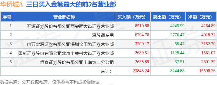 11月11日华侨城A(000069)龙虎榜数据:游资虹桥路徐晓上榜