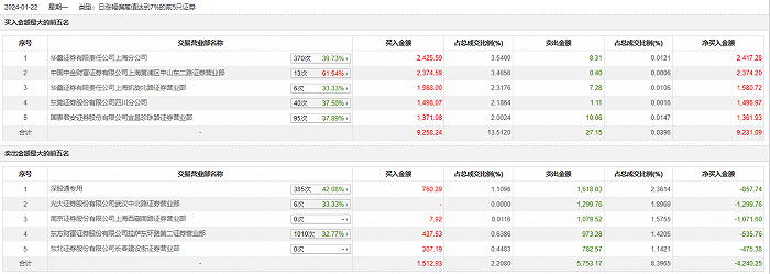 特发信息1月22日涨停,全天换手率达9.83%,振幅达10.56%。龙虎榜数据显示,营业部席位合计净买入4990.84万元。其中,华鑫证券上海分公司、中国中金财富证券有限公司上海黄浦区中山东二路证券营业部分别买入2425.59万元、2374.59万元;深股通专用、光大证券武汉中北路证券营业部分别卖出1618.03万元、1299.76万元。