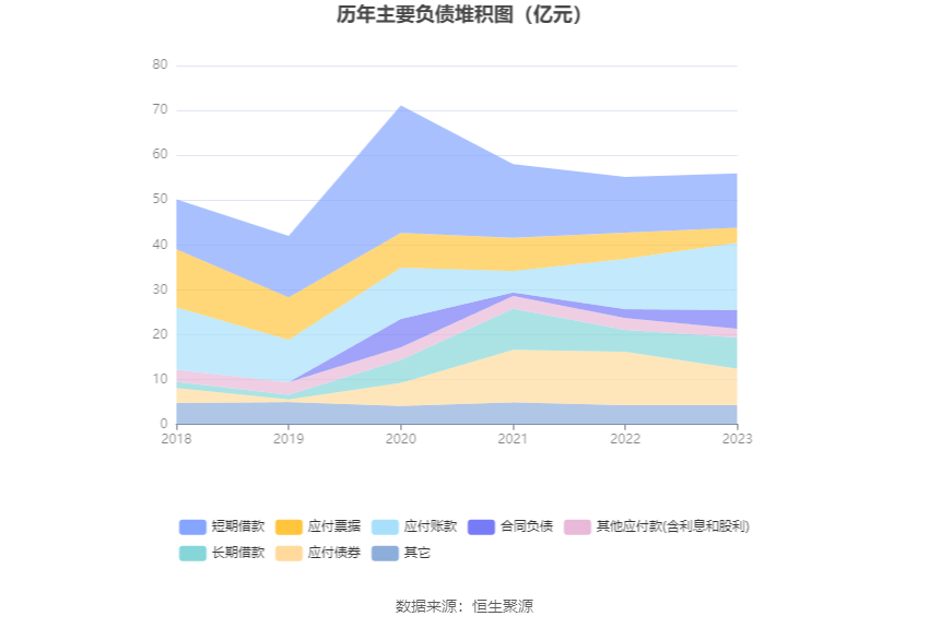 负债重大变化方面,截至2023年年末,公司应付债券较上年末减少32.04%,占公司总资产比重下降5.09个百分点;应付账款较上年末增加33.44%,占公司总资产比重上升4.28个百分点;应付票据较上年末减少42.11%,占公司总资产比重下降3.22个百分点;合同负债较上年末增加111.50%,占公司总资产比重上升2.67个百分点。