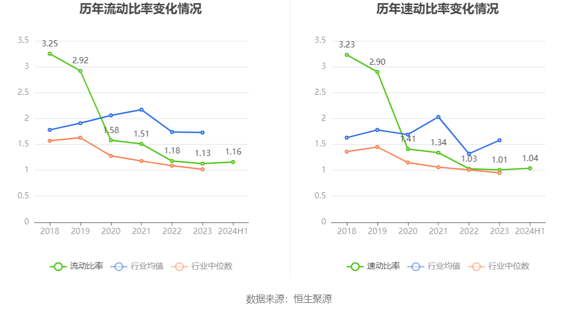 2024年上半年,公司流动比率为1.16,速动比率为1.04。