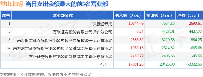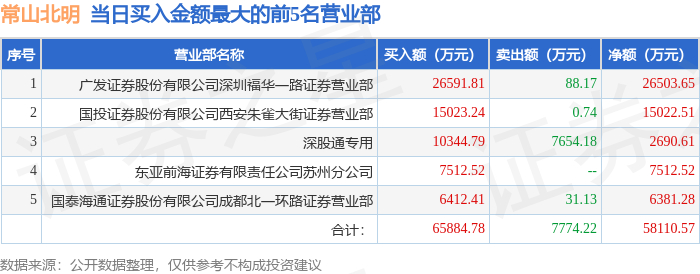10月16日常山北明(000158)龙虎榜数据:游资朱雀大街上榜