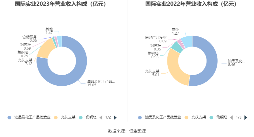 分产品看,油品及化工产品批发业、光伏支架、角钢塔2023年毛利率分别为0.97%、28.80%、20.46%。