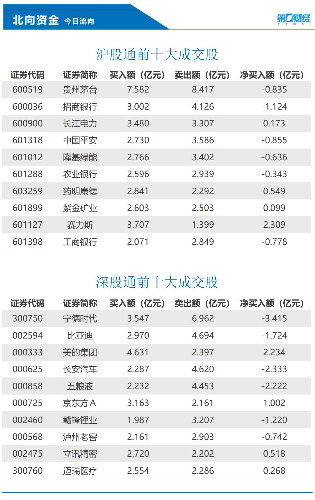 净卖出额居前三的是宁德时代、长安汽车、五粮液,分别遭净卖出3.42亿元、2.33亿元、2.22亿元。
