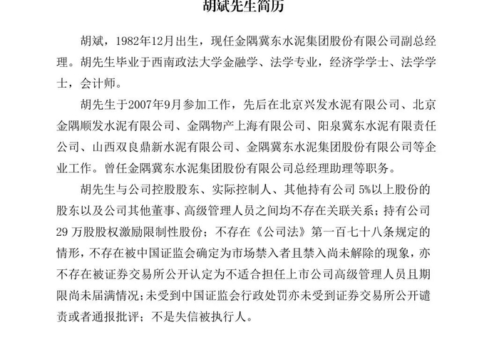 三位新任高管均与公司控股股东、实际控制人及其他持股 5% 以上股东无关联关系,不存在相关法律法规规定的不适格任职情形。此次人事调整完成后,金隅冀东水泥将进一步优化管理层结构,为公司持续稳健发展注入新动力。