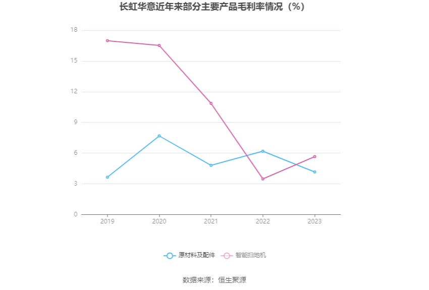 分产品看,冰箱冰柜压缩机、原材料及配件、智能扫地机2023年毛利率分别为16.33%、4.16%、5.66%。