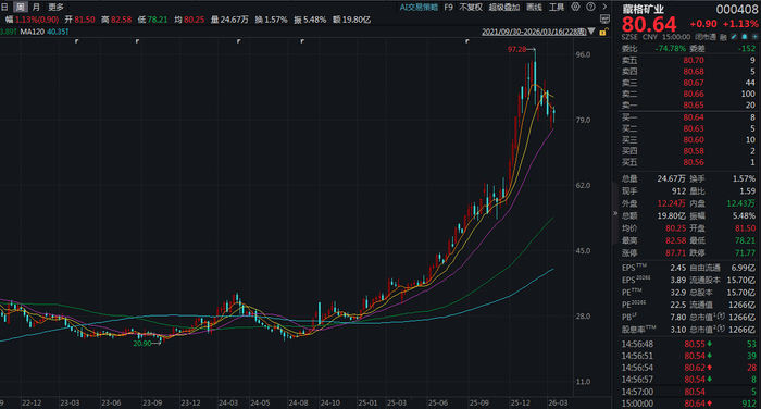 上周末,各家机构给出的2026年净利润预期值多数超过70亿元,少数机构更是为其给出了119元的目标价,相当于在现价基础上再升50%左右。