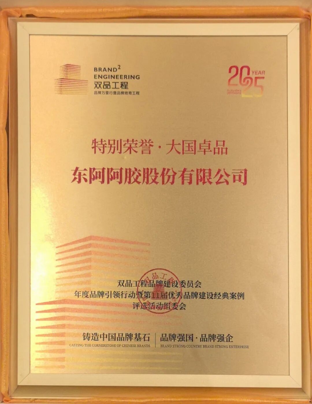 此次获奖,是对东阿阿胶近年来品牌建设成果的高度认可。值此“十四五”收官与“十五五”谋划的关键时期,东阿阿胶将继续秉持“守正创新 聚势创值”的理念,坚守初心、积极突破,围绕消费者需求,以文化为纽带,以创新为引擎,持续提升品牌价值,致力于成为代表中国形象的大国品牌,为品牌强国建设贡献力量。
