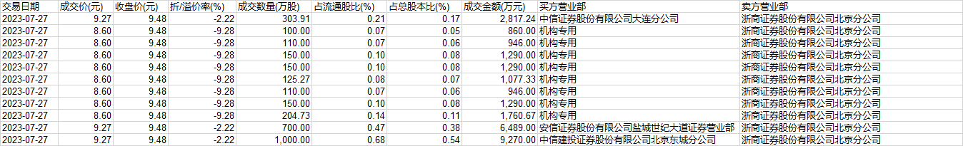 兴业银锡7月27日大宗交易成交3103.91万股,成交额2.8亿元,占当日总成交额的59.26%,成交均价9.03元,较市场收盘价9.48元折价4.75%,其中最高成交价9.27元,最低成交价8.6元。