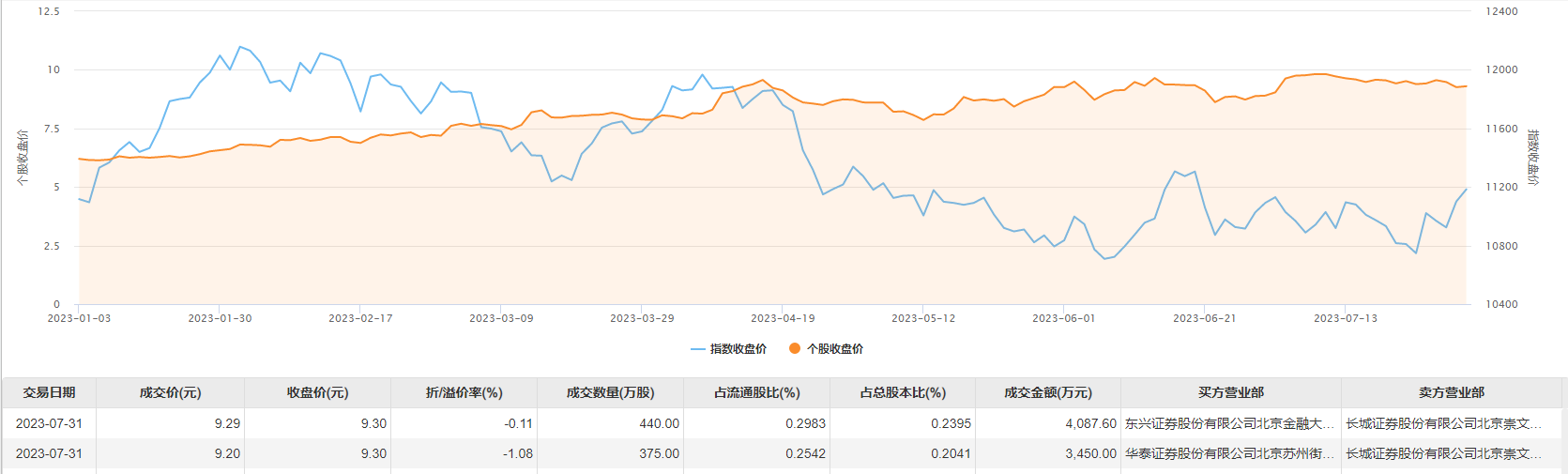 今日大宗交易成交815万股,成交额7537.6万元,占当日总成交额的37.98%,成交均价9.25元,较市场收盘价9.3元折价0.54%,其中最高成交价9.29元,最低成交价9.2元。
