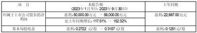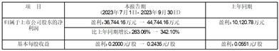 1、上述业绩预测经公司财务部初步测算,具体数据以公司2023年第三季度报告数据为准。