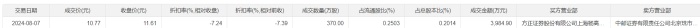 8月7日大宗交易成交370万股,成交额3984.9万元,占当日总成交额的16.3%,成交价10.77元,较市场收盘价11.61元折价7.24%。