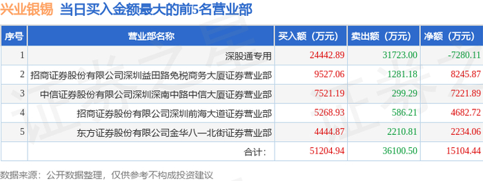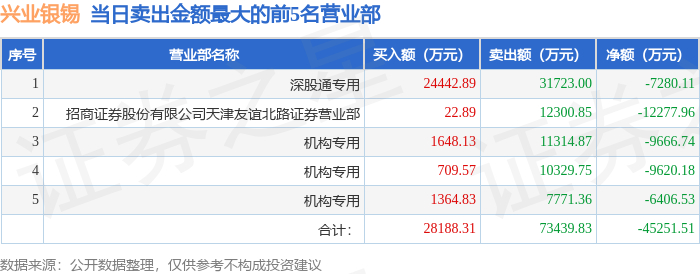 10月14日兴业银锡(000426)龙虎榜数据:机构净卖出2.57亿元,北向资金净卖出7280.11万元