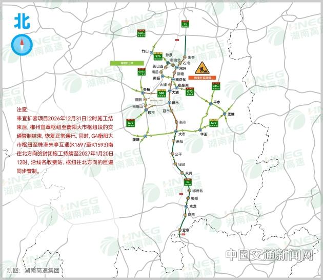 2026年12月31日12时后郴州宜章枢纽至衡阳大市枢纽段的管制解除,恢复正常通行,衡阳段从大市枢纽起往北(5个枢纽、5个收费站)的管制,保留至2027年1月20日12时。