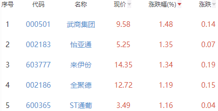 其中,武商集团、怡亚通、来伊份、全聚德和ST通葡位列板块涨幅前五位,涨幅分别为1.48%、1.35%、1.34%、1.19%和1.16%。