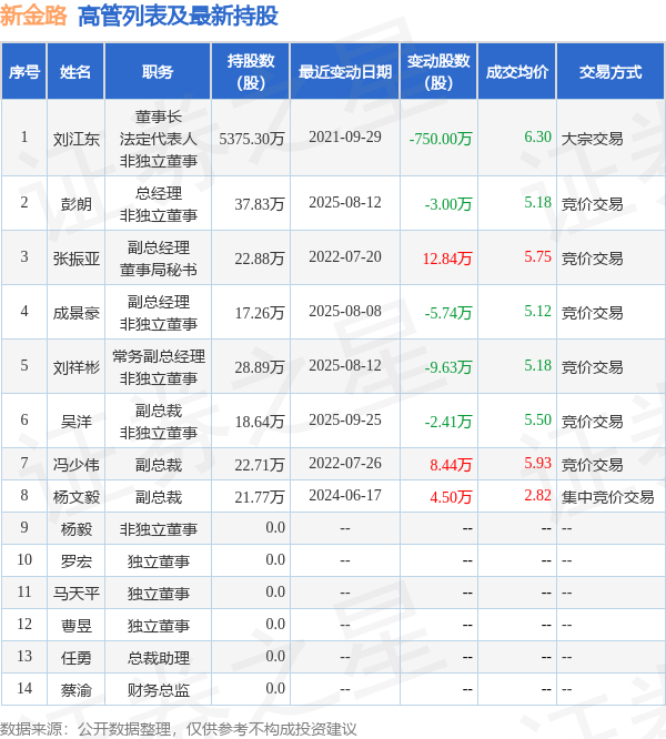 新金路近半年内的董监高及核心技术人员增减持详情如下: