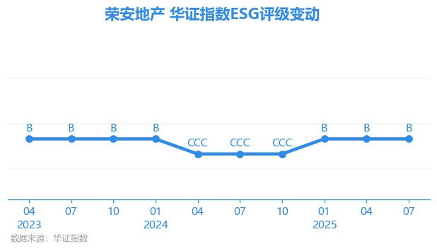 日前,华证指数公布了新一期(2025年7月31日)的ESG评级结果,荣安地产(000517.SZ)获得B评级(华证指数评级为C起至AAA九档,C为最低档,AAA为其最高一级评级/AA为其第二档),上一期(2025年4月30日)ESG评级为B。本期ESG评级在102家房地产管理和开发行业A股上市公司中排名第60(上一期排名第63)。