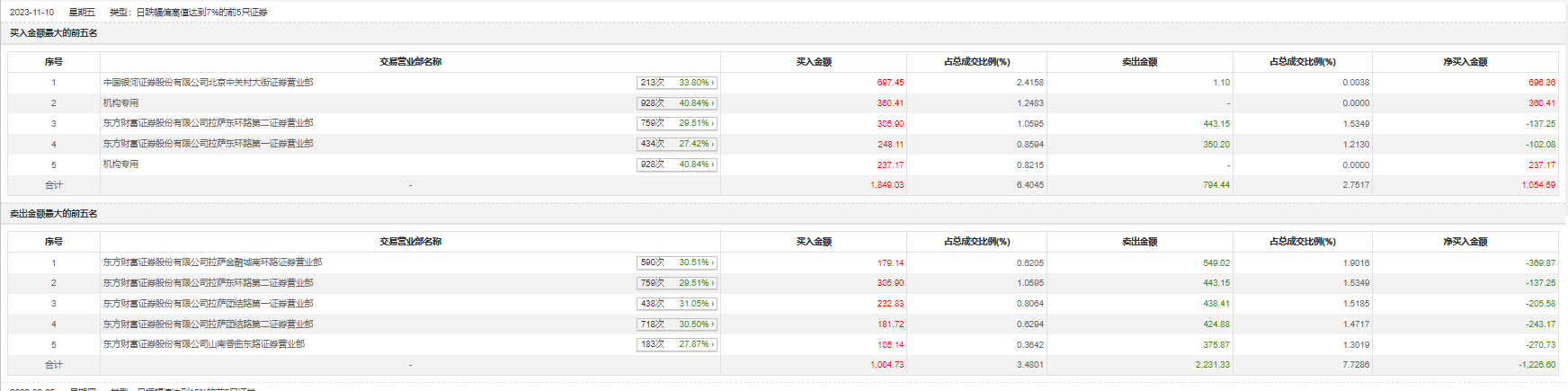 11月10日,凤凰航运今日跌9.41%,全天换手率达9.07%,振幅达6.47%。龙虎榜数据显示,营业部席位合计净卖出34.75万元。其中,机构合计净买入597.57万元。此外,东方财富证券拉萨金融城南环路证券营业部、东方财富证券拉萨东环路第二证券营业部分别卖出549.02万元、443.15万元;中国银河证券北京中关村大街证券营业部、东方财富证券拉萨东环路第二证券营业部分别买入697.45万元、305.90万元。