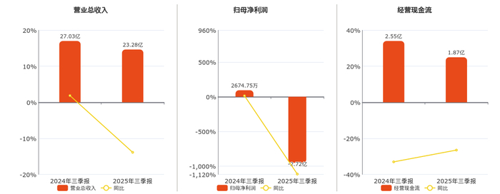 红太阳(000525.SZ):2025年三季报净利润为-2.72亿元,同比由盈转亏