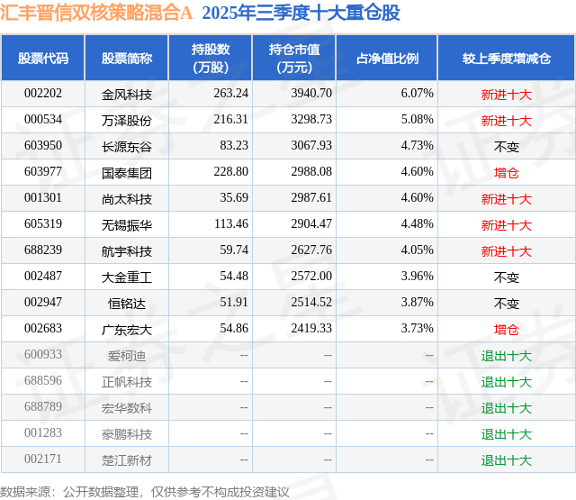 根据2025基金Q3季报公募基金重仓股数据,重仓该股的公募基金共1家,其中持有数量最多的公募基金为汇丰晋信基金的汇丰晋信双核策略混合A。汇丰晋信双核策略混合A目前规模为3.85亿元,最新净值1.8937(12月29日),较上一交易日上涨0.12%,近一年上涨50.68%。该公募基金现任基金经理为韦钰。