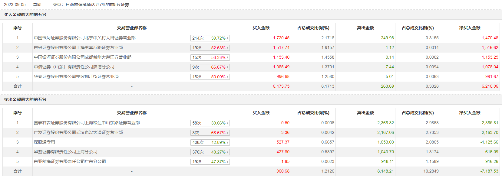 具体来看,中国银河证券北京中关村大街证券营业部、东兴证券上海肇嘉浜路证券营业部分别买入1720.45万元、1517.74万元;国泰君安证券上海松江中山东路证券营业部、广发证券武汉京汉大道证券营业部分别卖出2366.32万元、2167.06万元。