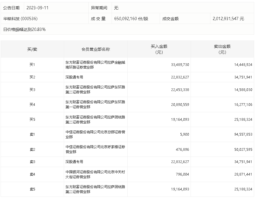具体来看,中信证券北京总部证券营业部、中信证券北京呼家楼证券营业部分别卖出9455.79万元、5002.76万元;东方财富证券拉萨金融城南环路证券营业部、深股通专用分别买入3348.97万元、2283.26万元。