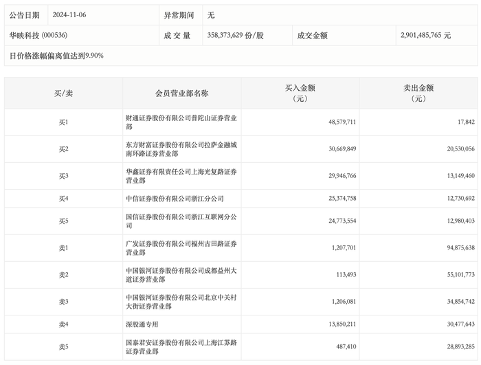 11月6日,华映科技今日涨停,龙虎榜数据显示,上榜营业部席位全天成交4.8亿元,占当日总成交金额比例为16.54%。其中,买入金额为1.76亿元,卖出金额为3.04亿元,合计净卖出1.27亿元。