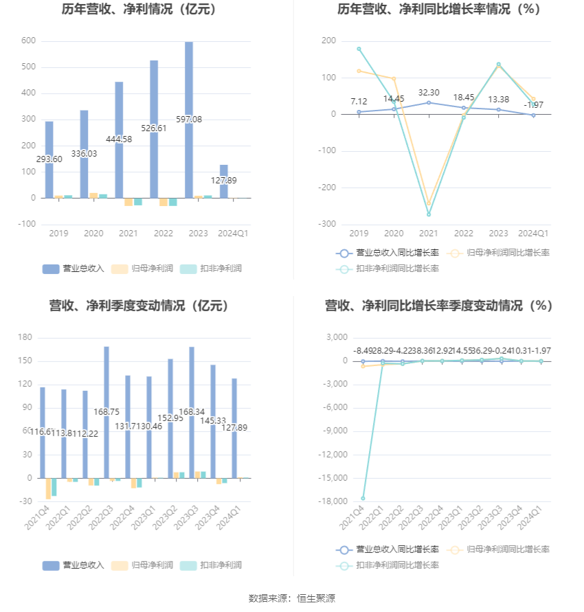 2024年第一季度,公司毛利率为11.16%,同比上升3.58个百分点;净利率为2.32%,较上年同期上升1.67个百分点。