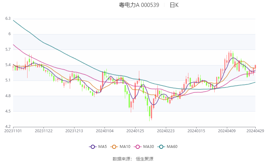 粤电力A:2024年第一季度净利润1.26亿元 同比增长42.80%