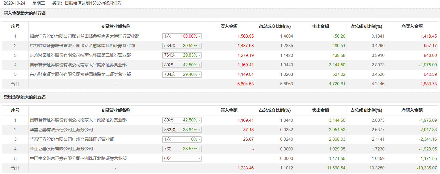 具体来看,知名游资现身龙虎榜,招商证券深圳益田路免税商务大厦证券营业部、东方财富证券拉萨金融城南环路证券营业部分别买入1568.65万元、1437.68万元;作手新一(国泰君安证券南京太平南路证券营业部)、华鑫证券上海分公司分别卖出3144.50万元、2954.52万元。