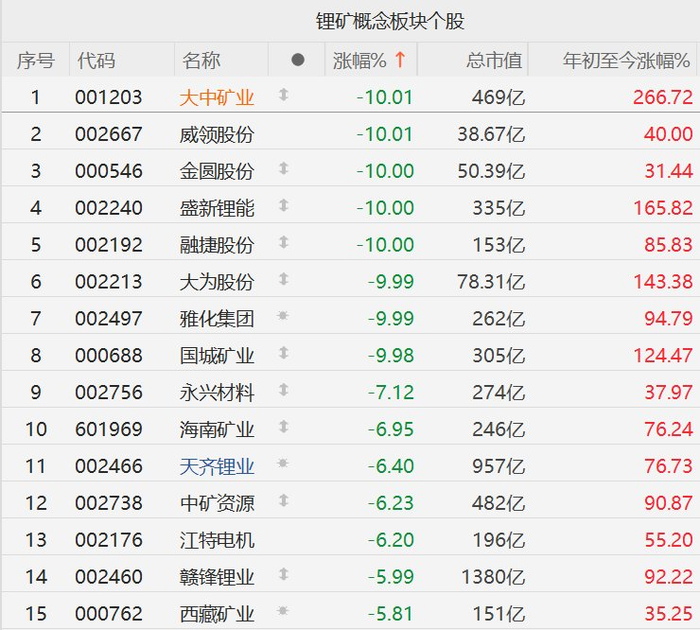 A股异动丨持续多日上涨的锂矿股集体回调,金圆股份、融捷股份等多股跌停
